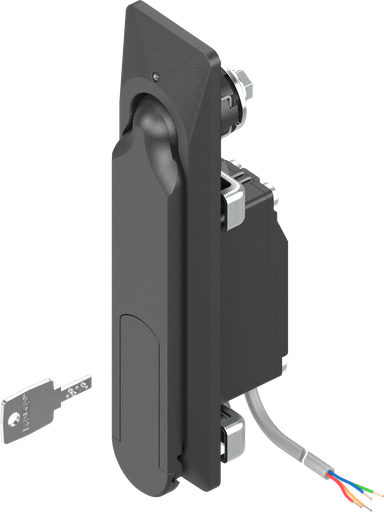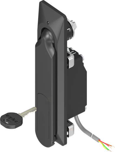 cam lock with status feedback; type approved as "position switch, design type 1" acc. to EN ISO 14119 (Machine Directive) and as "monitoring device with performance level d" acc. to EN ISO 13849