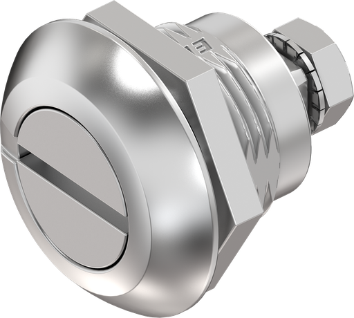 As standard, quarter turn locks consist of a housing that is inserted into the hole in the door leaf (cut-out) and fastened on the inside of the cabinet with a nut, as well as an actuator and the locking tongue. The actuator, which EMKA offers in numerous variants and materials, transmits the rotary movement from the outside to the inside of the cabinet onto the locking tongue. The tongue of the reamer is thus rotated by at least 90° behind the cabinet frame and locks the latch and thus the door of the cabinet. This movement of the latch tongue gives the quarter turn lock its name.