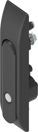 Swinghandle with push button 1185 for cam or rod control, keyed different, and for padlock, Zinc die black powder-coated; 1185-U5-V